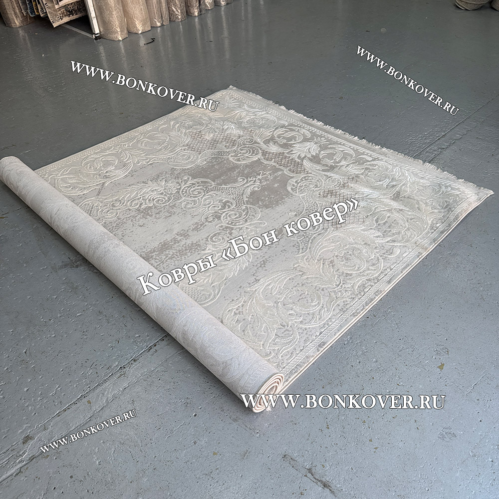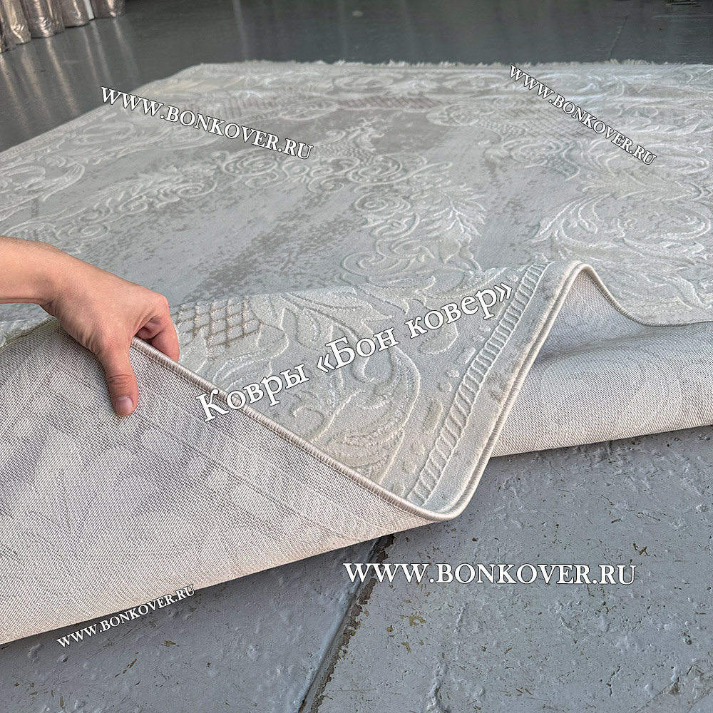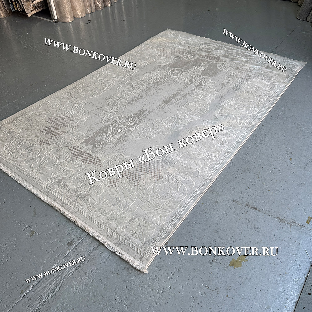 Ковер Турция Для Гостиной Дизайн 96 Белый со Светло-серым станет великолепным преображением жилого помещения, подчеркивая высокий статус владельца.